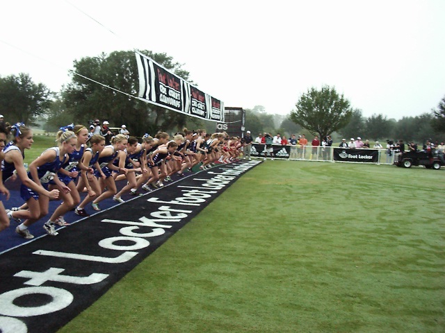 A foggy but warm day met the athletes at the Oak Trail Golf Course, the site of the 1999 Foot Locker Cross Country Championships.